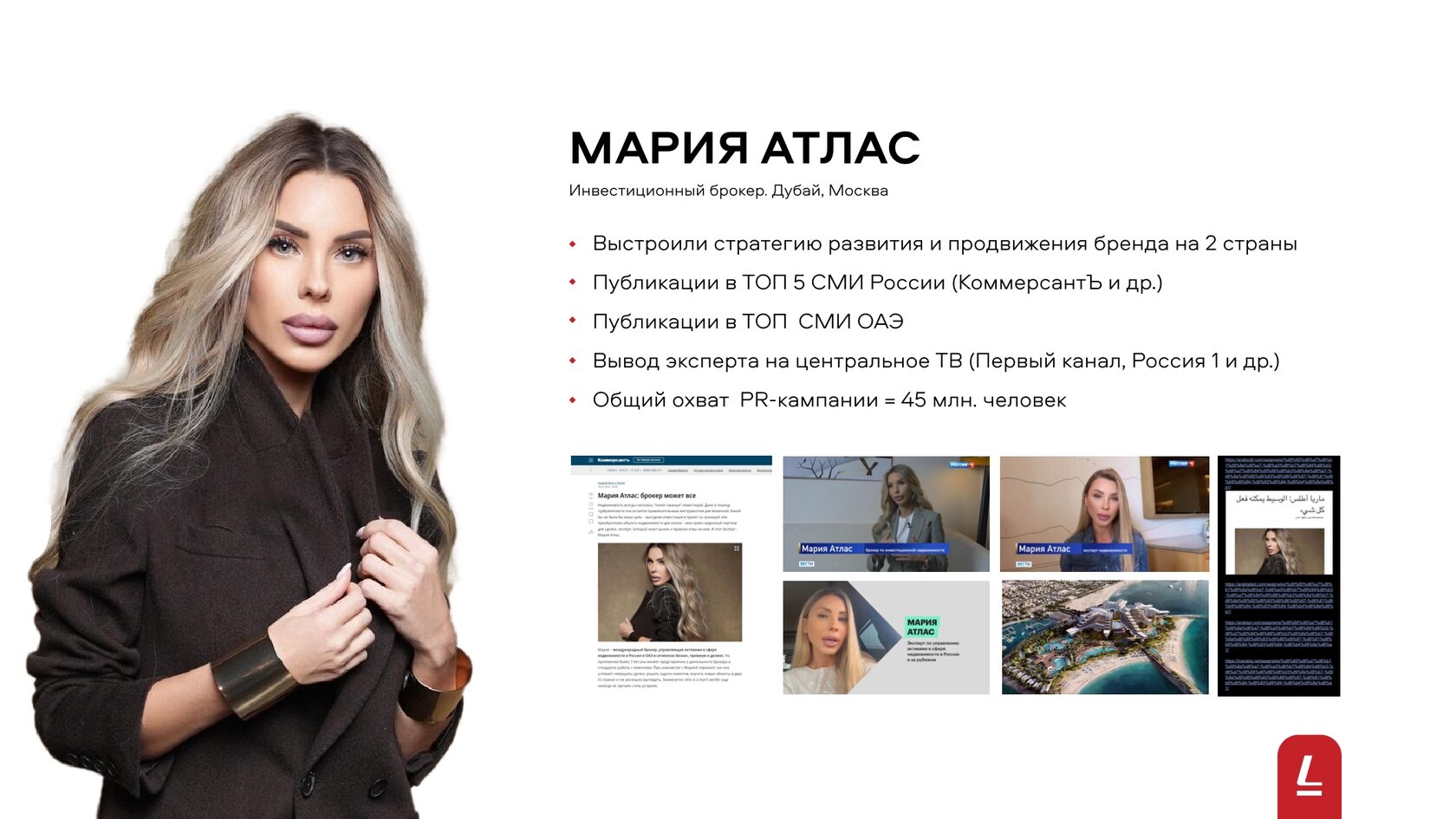 После реализации множества уникальных мероприятий я решила сосредоточиться на проектах с долгосрочной стратегией. Среди моих клиентов появились крупные компании и лидеры индустрий: дизайнеры, строительные фирмы, артисты, правительственные структуры и международные бренды, такие как Газпром International и Comedy Radio. Это стало отправной точкой для развития нового направления — международного консалтинга.